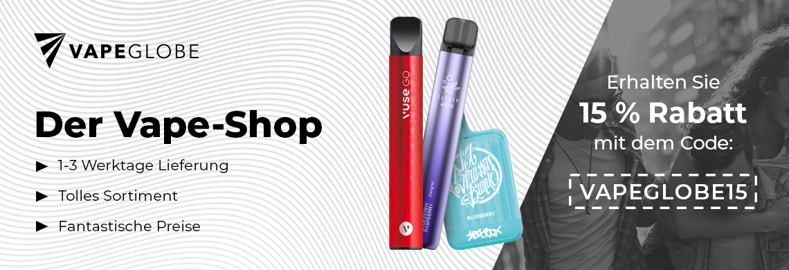 Bestellen Sie Ihre Vapes online bei uns – schnell und unkompliziert! Bei VapeGlobe können Sie Vapes online kaufen und dabei aus vielen Marken, Formaten und Aromen wählen – zu günstigen Preisen! Die Lieferung trifft nach 1-2 Werktagen bei Ihnen ein – versandkostenfrei!